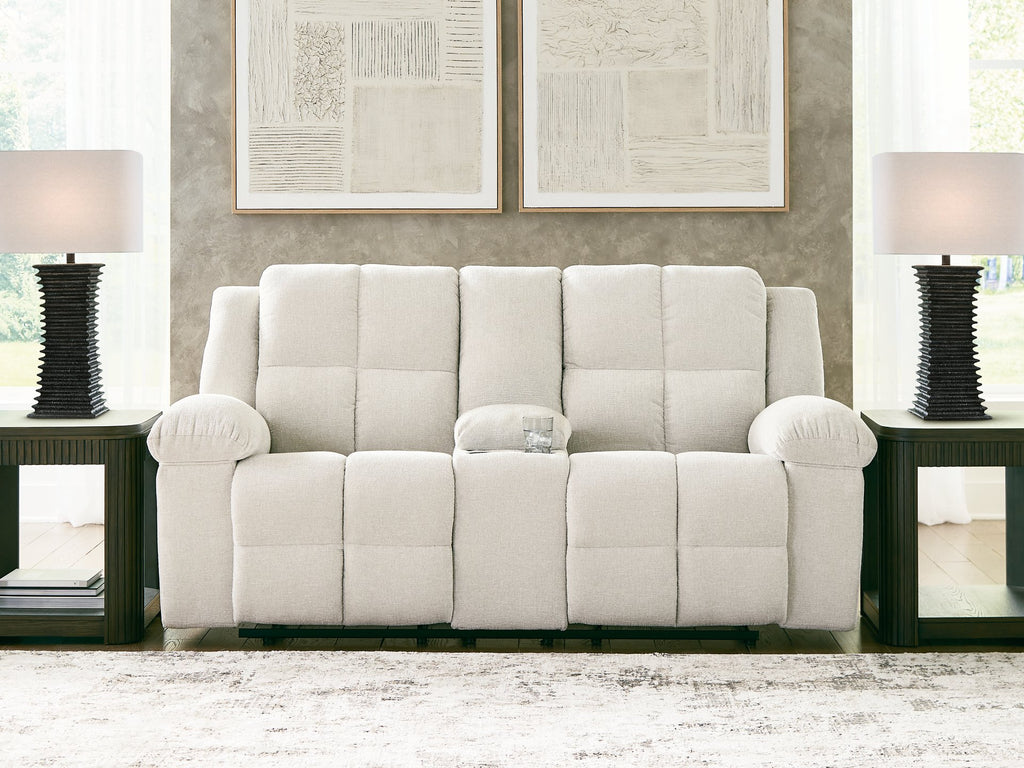 Specifications Dimensions 80''W x 43''D x 41''H Weight 210.0lbs. Brand Name Benchcraft® Material Performance Fabric|Next-Gen Nuvella™|Fabric Lifestyle Contemporary Shade Light UPC 24052964295 Features Performance Fabric Manual Reclining Wide Seat Recliner Zero Wall Recliner Storage Next-Gen Nuvella Cup Holder Reclining.