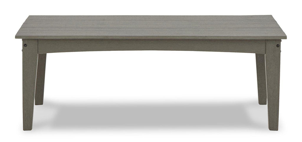 It’s the dawn of a new day for gray. Embrace the style trend with this loveseat and coffee table package. Crafted of HDPE material that combines the exceptional durability and weather resistance you need with the "wood look" you love, this timeless set takes alfresco living to a whole new level. The slatted styling on the table naturally sheds rainwater. Thick seat and back cushions on the loveseat are wrapped in our exclusive Nuvella® high-performance fabric that’s fade resistant, stain resistant and a breeze to clean.
